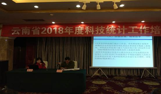 会上,省科技厅董保同副厅长作了重要讲话,省科技厅创发处王立新处长主持会议并作总结讲话;省财政厅教科文处刘抒江同志就做好全省科技统计工作提出了意见和建议;昆明、曲靖、玉溪和文山等4个州(市)就2018年科技统计工作进行了大会交流发言;统计中心钟翔副主任、段江涛副研究员分别就科技机构统计调查和国家科技计划项目跟踪调查工作进行了专题培训。