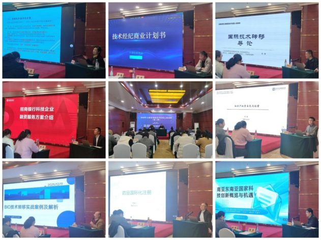 集训阶段,课程设置出于《国家技术转移专业人员能力等级培训大纲(试行)》又结合云南实际情况,采用“线上自学+线下集训” 相结合,兼顾学习灵活性与互动实效性。线上自学阶段(12月5日—9日),通过专用培训平台,开展高校院所科技成果转化、国际技术转移等案例研讨,系统学习数改智转赋能传统企业、助力中小企业专精特新升级、材料行业新质生产力打造等内容分享。线下集训阶段(12月10日—12日),采用 “核心授课 + 沙龙研讨 + 分组实操” 形式,邀请来自云南和上海两地的科研院所、知名企业、专业律所的行业专家授课,课程涵盖专利撰写、商业计划书撰写、国际技术转移导论、知识产权资本化运营、科技金融案例实操、生物医药案例实操、药品海外注册案例实操、南亚东南亚国家科技创新机遇等核心内容。