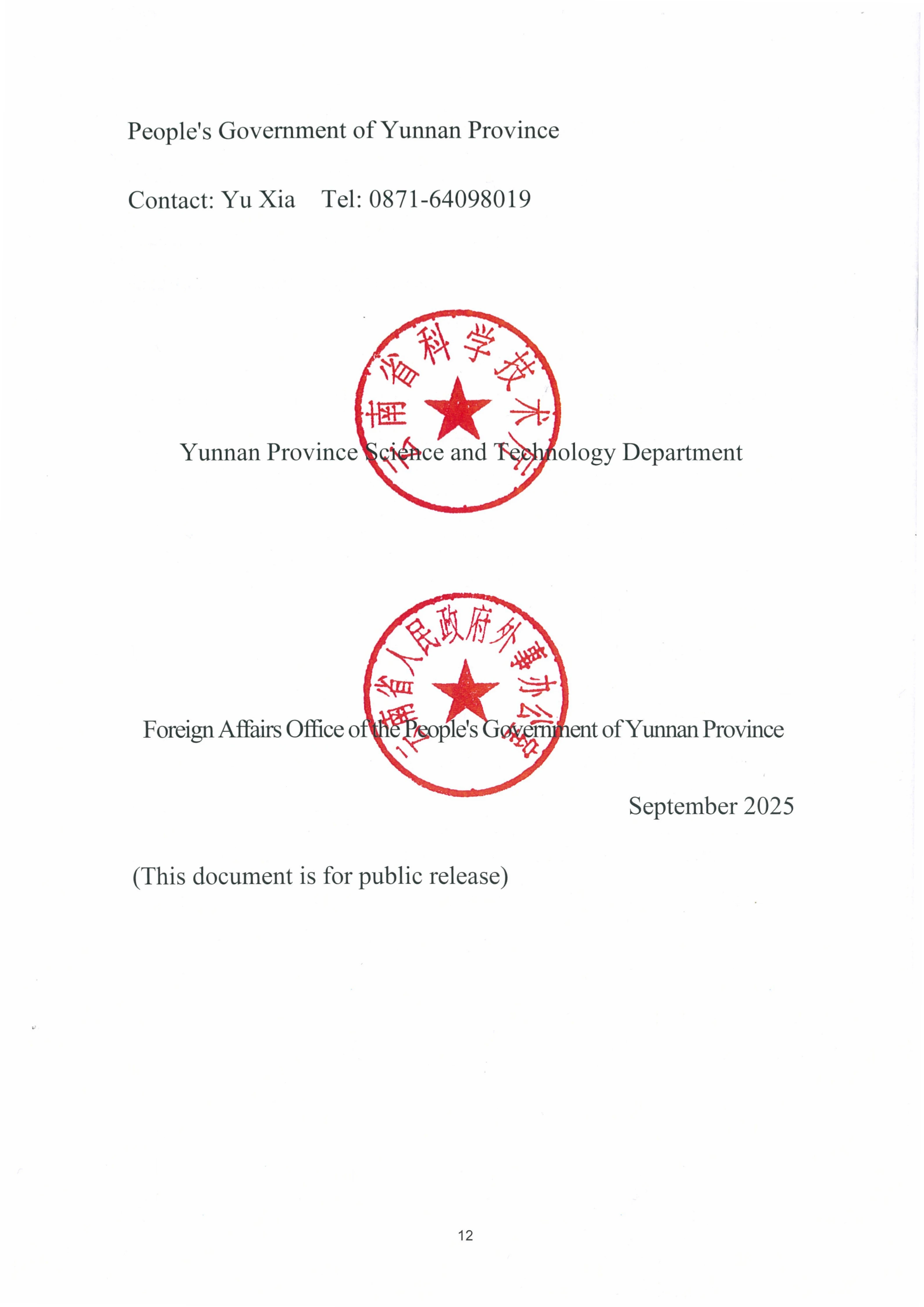 Contact Information:Wang Rui 0871-63113764 Yang Yigong 0871-63138908