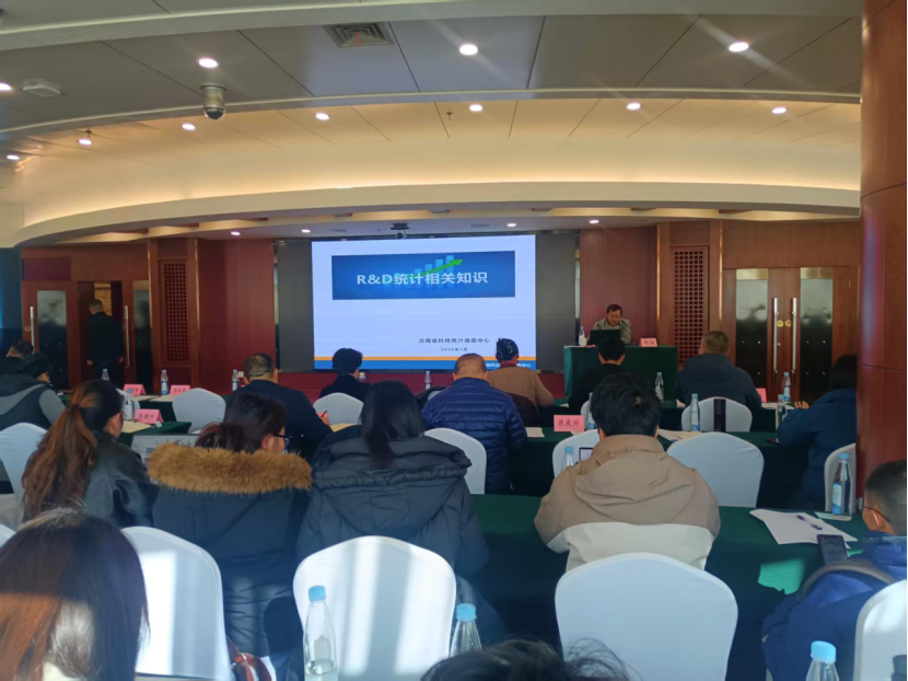 为贯彻落实全国2025年度科技统计与创新调查工作培训会议精神,安排部署2026年科技统计重点工作,增强统计工作业务能力,1月16日,由我院统计中心组织,省科技厅在昆明金泉大酒店召开了2025年度科技统计与创新调查工作培训会议。全省各州(市)科技局分管领导及科技统计业务骨干、在昆科学研究和技术服务业非企业单位共120余人参加了会议。