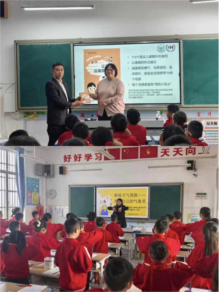 身心健康护航:云南大学附属医院眼科主任医师吴敏教授开展了儿童眼外伤方面的主题讲座,云南省心理卫生中心张莎副研究员开展了青少年心理健康主题讲座,为学生的身心健康成长提供专业指导。